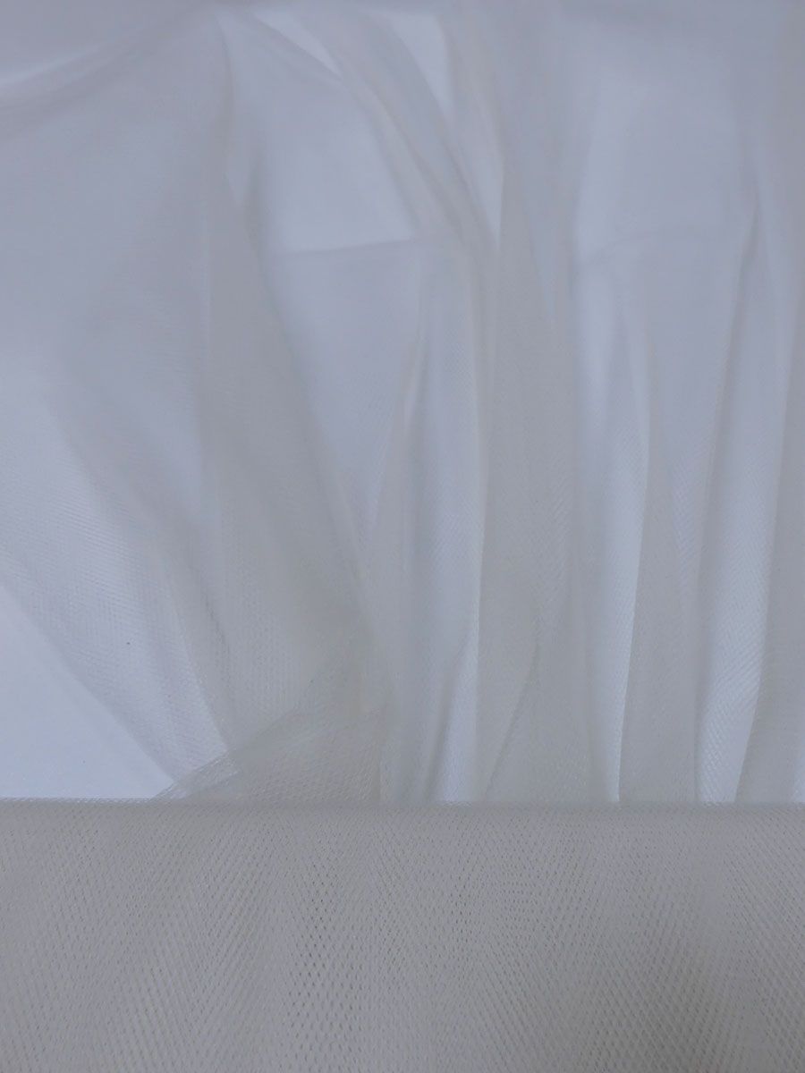 En mjuk fin tyll som passar till brudslöja eller att lägga över en klänning. Bredd 2.80 m. 1005 Polyamid.