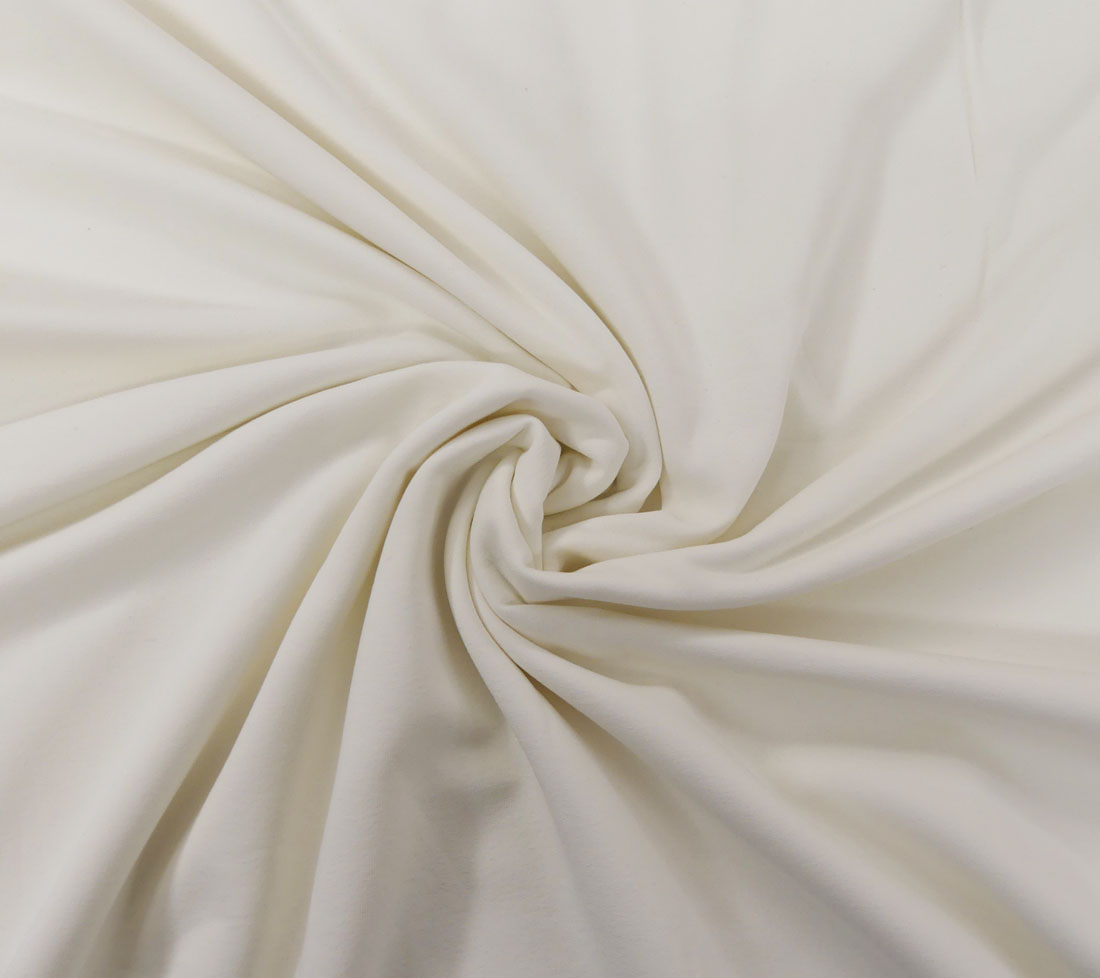 Joggingtyg av mycket fin kvalitet med ruggad baksida. Oekotex 100. 95% bomull 5% lycra. 1,60 m bredd. 250 gr/m².