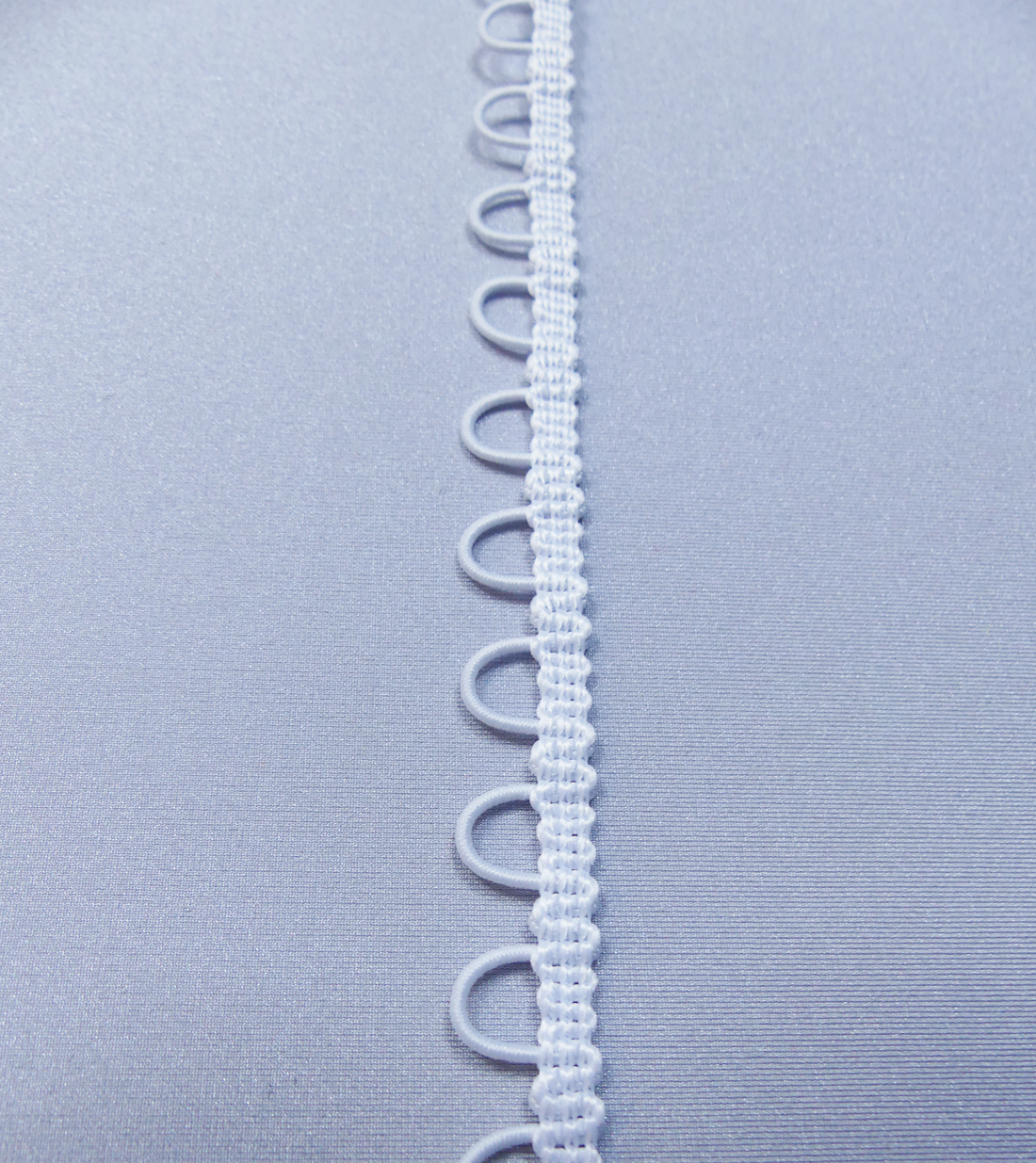 Fast knapphålsband med öglor. Snyggt till knäppning i klänning. Även bra att sätta i nederkanten på en ”haircuff” så den kan fästas med hårnålar i tofsen.