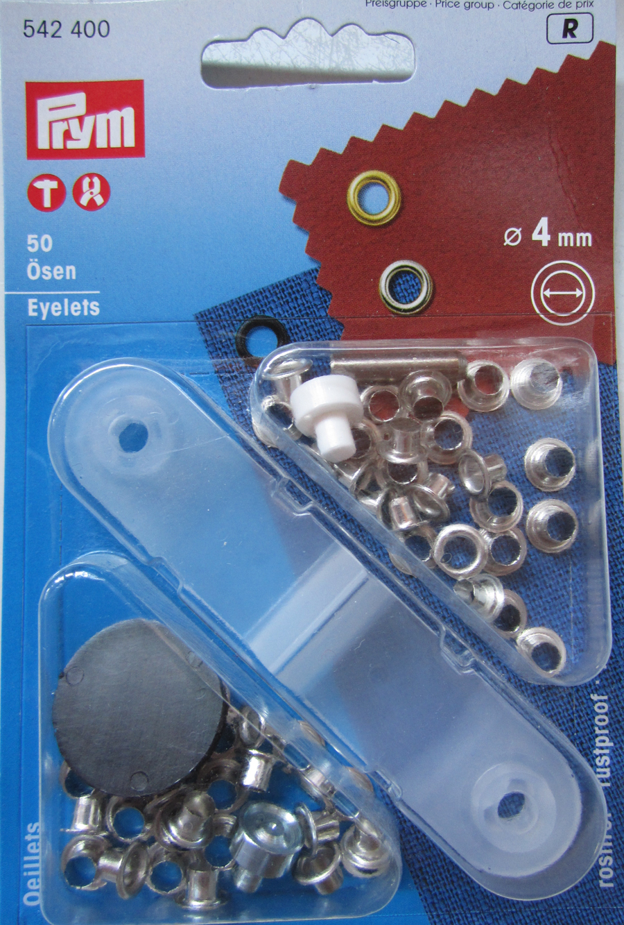 Dubbelsidiga (håller mycket bättre) öljetter att slå i. 4 mm i diameter. 50 st/förp.