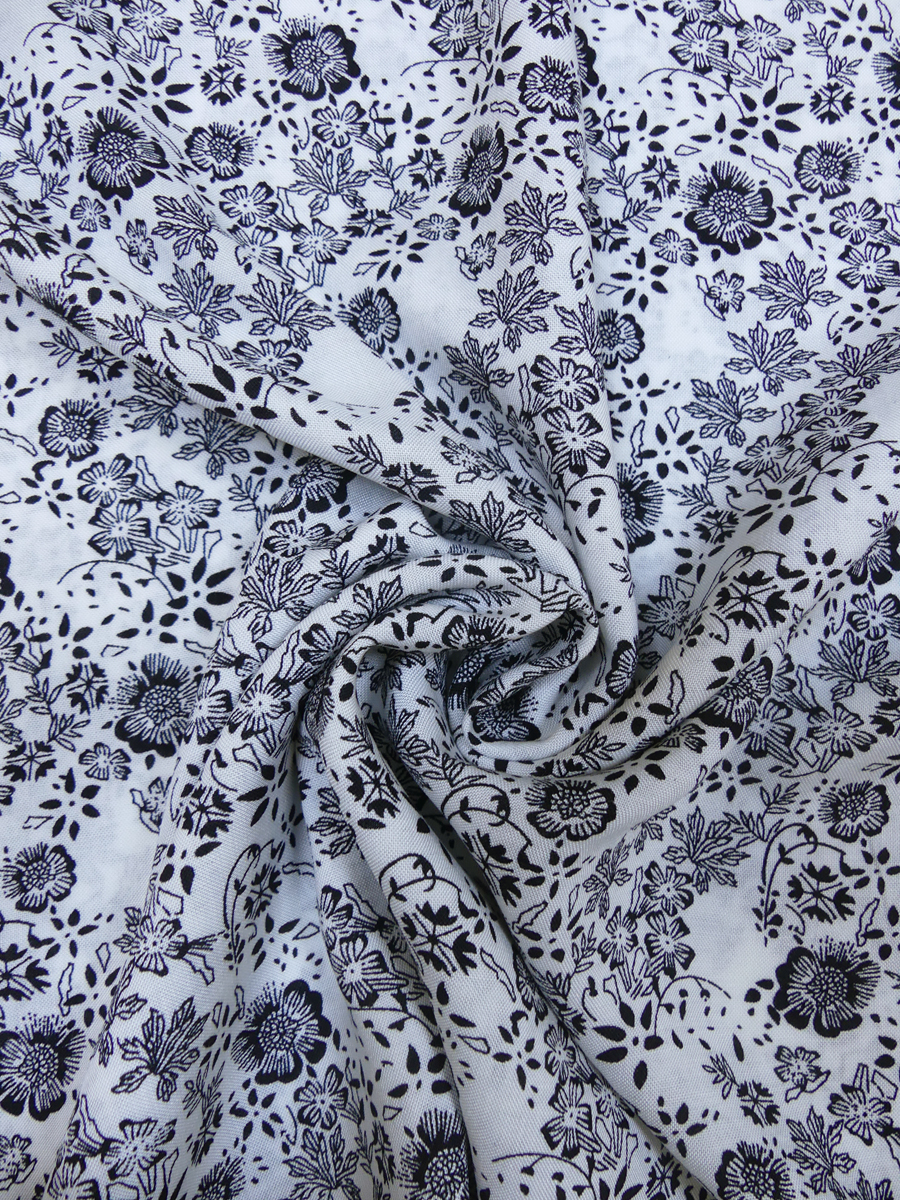En mjuk fin viskos, inte genomskinlig. Fint fall. Perfekt till blus, kjol, klänning och vidare byxa. En stor blomma är ca 2 x 2 cm.